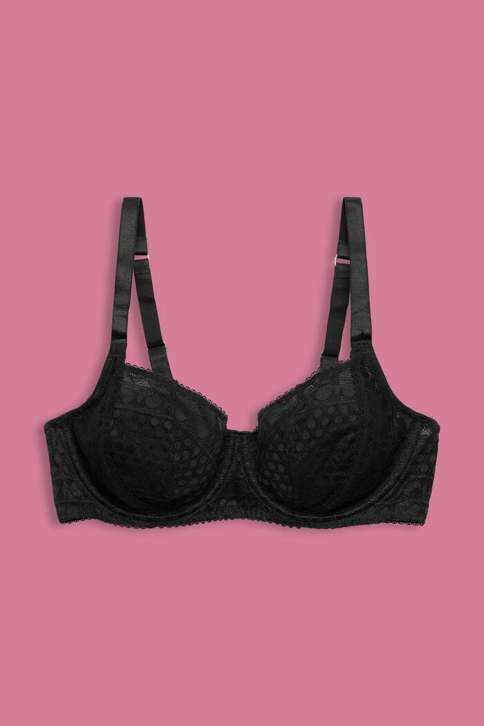 Designed for larger cup sizes, this lace balconette bra offers maximum comfort and support.