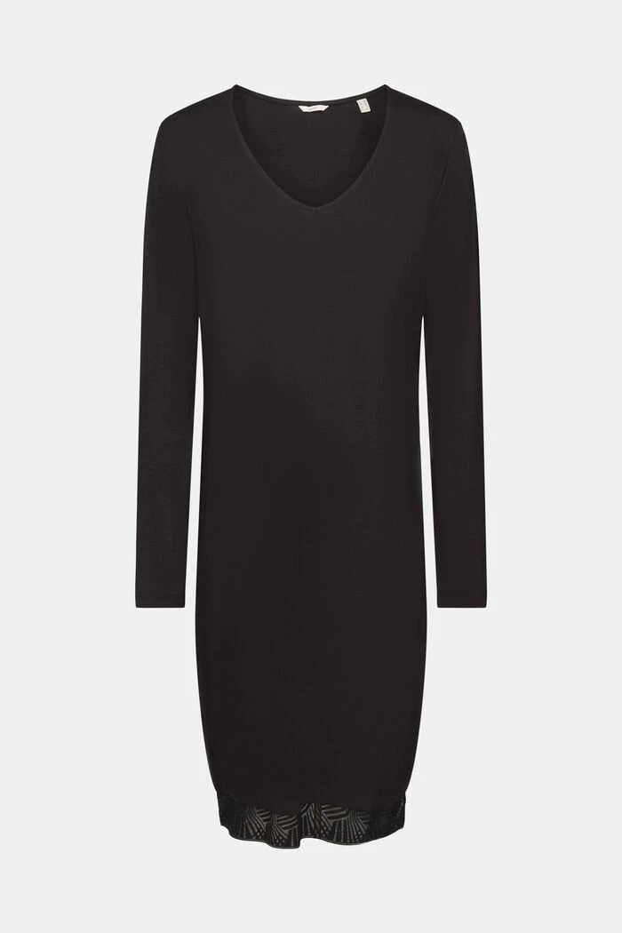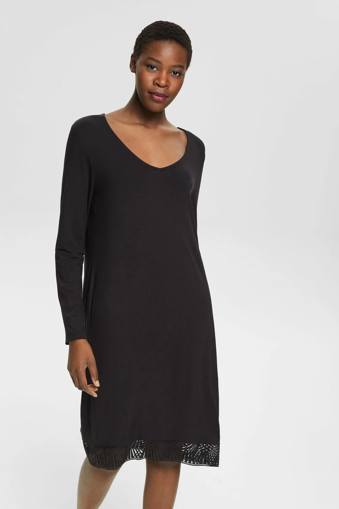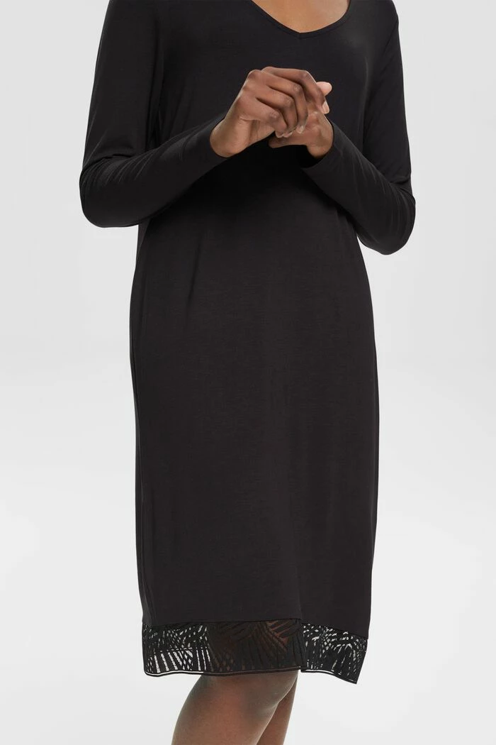 Für gemütliche Nächte zu Hause: Langärmeliges Nachthemd mit Spitze aus LENZING™ ECOVERO™-Viskose.