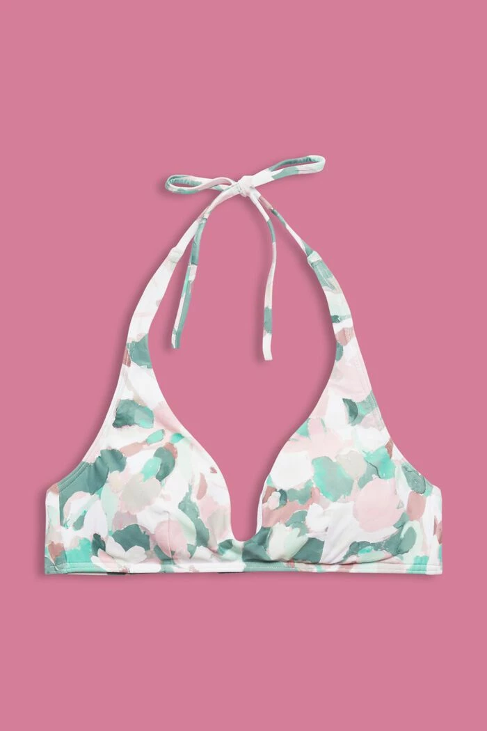 Mit dem gemusterten Neckholder-Bikinitop steht dein Beachwear-Look fĂŒr diesen Sommer. Das wattierte Bikinitop ist aus einem recycelten Material gefertigt und ein echter Eyecatcher.